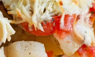 Előmelegített sütőben 180°C-on kb. 30-40 percig sütjük, amíg a teteje aranyszínű nem lesz.