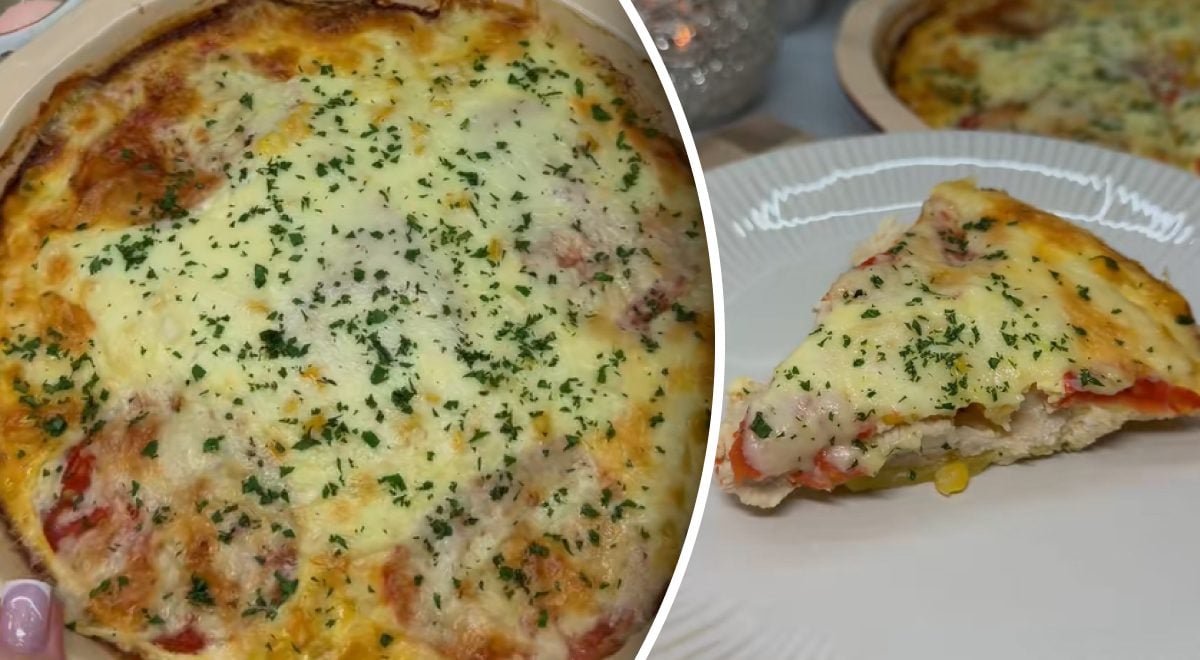 Ezután rátesszük a töltelékre a karikára szeletelt paradicsomot, és kirakjuk a kukoricát. Az edényt 200 fokra előmelegített sütőben 20 percig sütjük. Ezután csökkentjük a hőmérsékletet 180 fokra, és további 25 percig sütjük a vacsorát. Sütés előtt 10 perccel szórjuk meg az edényt sajttal.