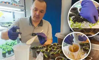 A paradicsom vetésének mélysége – 1-1,5 cm. Először a kutat meleg vízzel öntjük, mindegyikbe 3 magot teszünk (nem mindegyik fog felszállni). Fedjük le egy levágott, zárt fedelű műanyag palackkal, majd húzzuk le agrofibre és mulcsozzuk le. A mulcs segít melegen tartani a talajt.